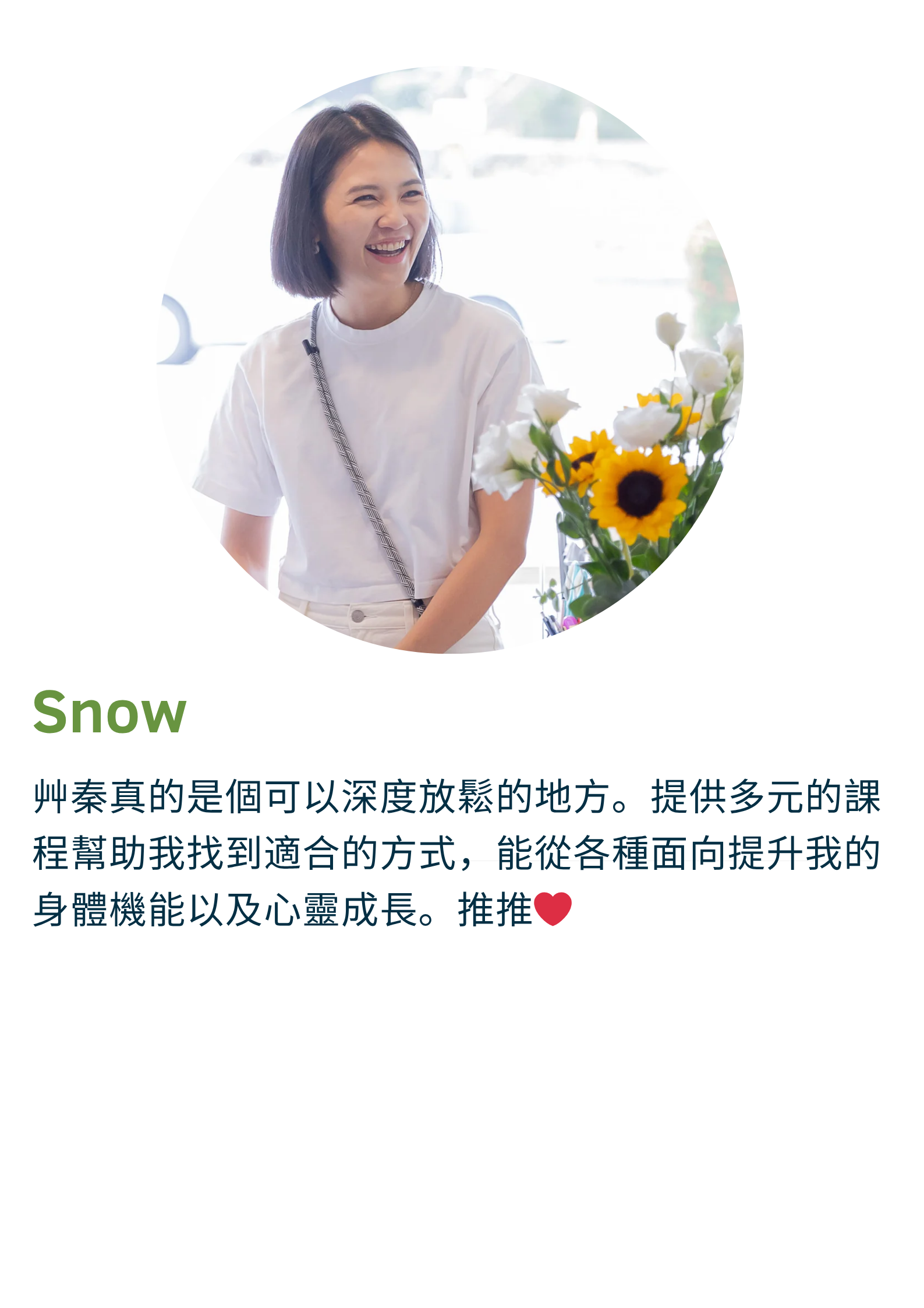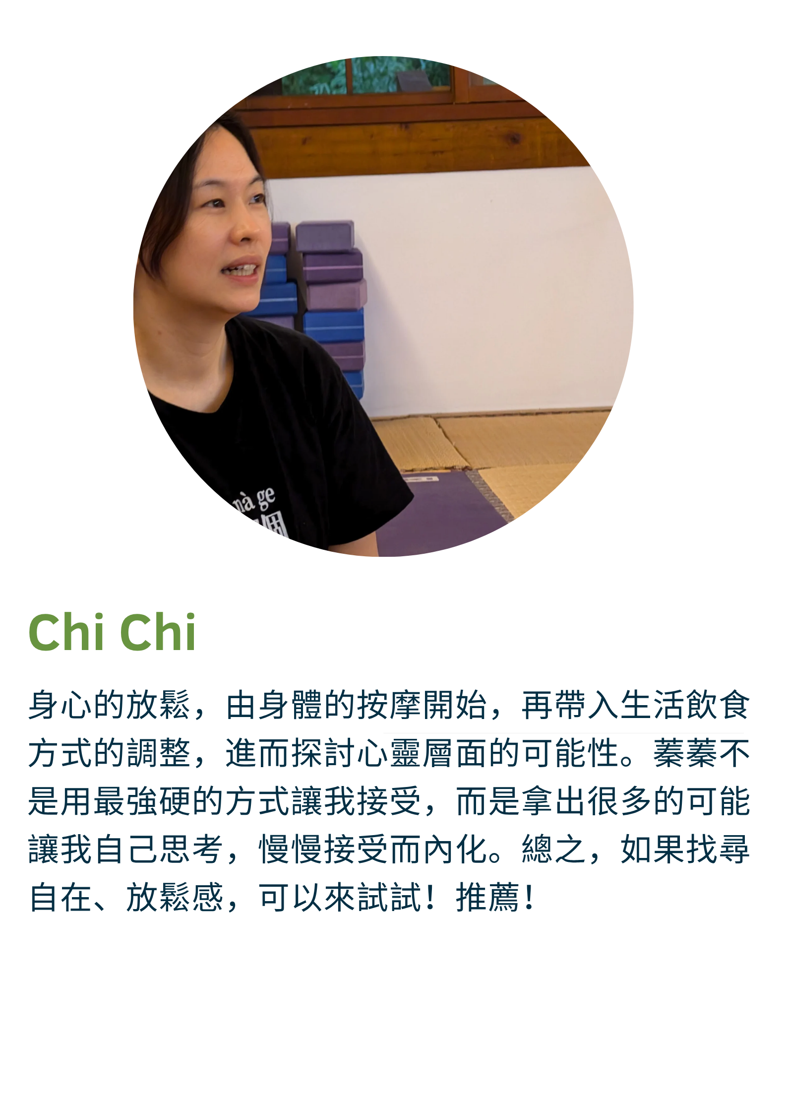 - 想透過按摩、舞動、團體聊療、調香重新感受「我很好」的妳