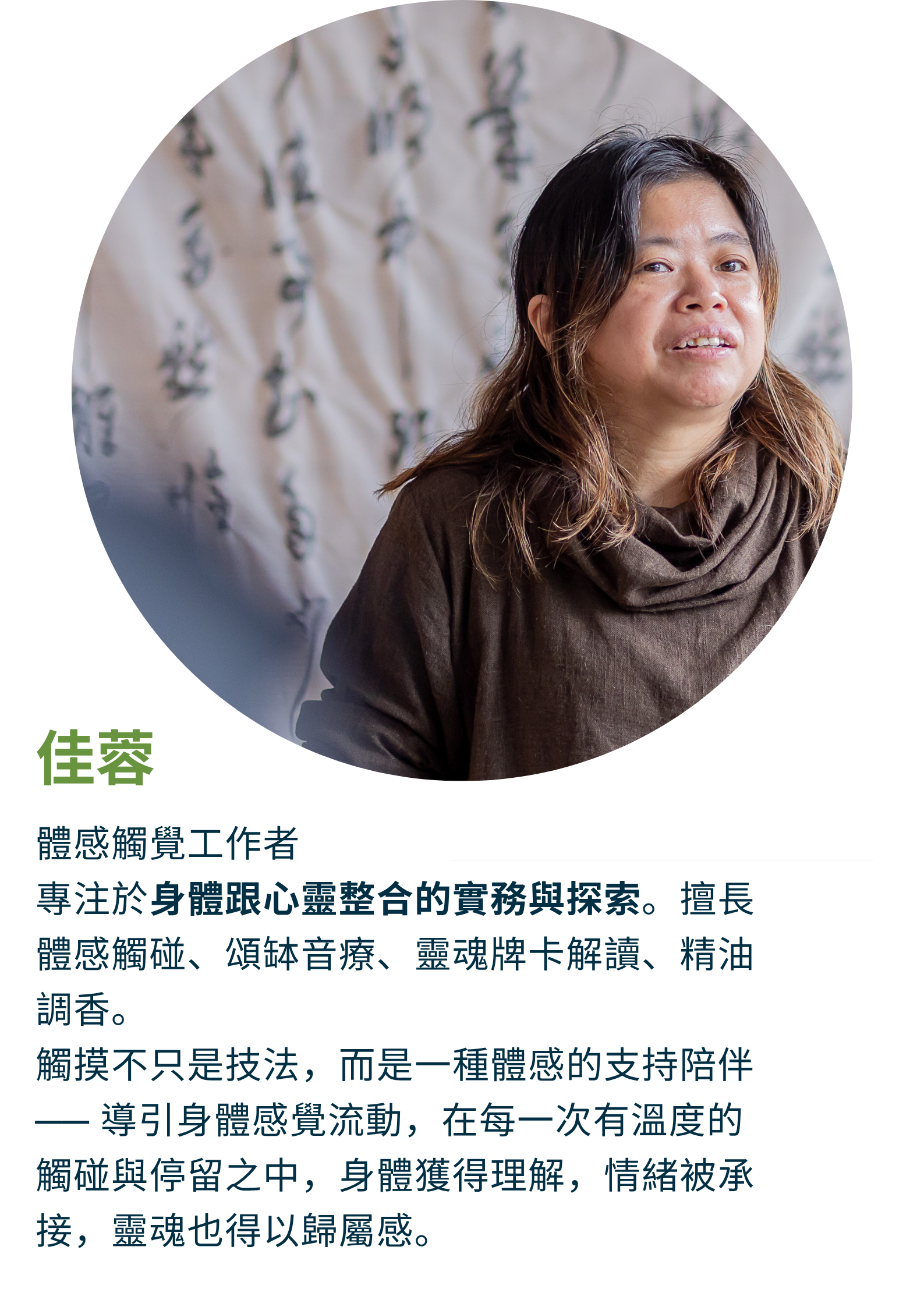 很多時候,我們的情緒藏在身體的某個角落 ,一個緊繃的部位、一個不自覺收縮的呼吸。在探索的過程,你將透過有溫度的引導與輕柔的動作,慢慢鬆開那些壓抑與沈重的感受。讓情緒流動,讓身體說話,重新與自己建立溫柔而真實的連結。