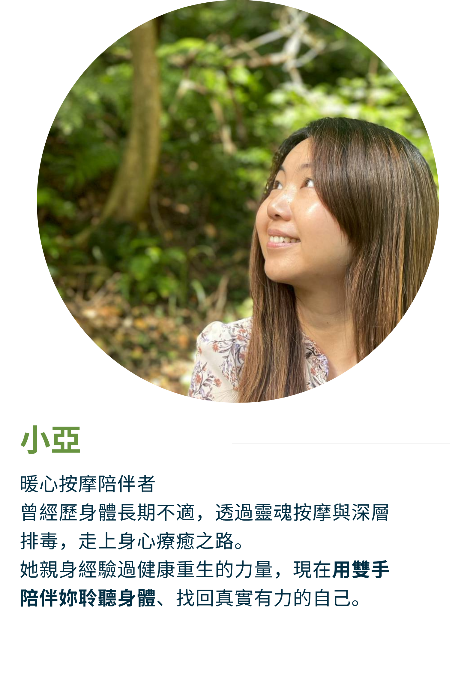 這是艸秦第一次結合按摩 × 自然 × 陪伴的實驗旅程,誠摯邀請妳用開放的心參與,讓身心回到自己的節奏。